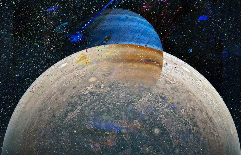Jupiter, Neptune and the Sun. Montage by Lanvi Nguyen.